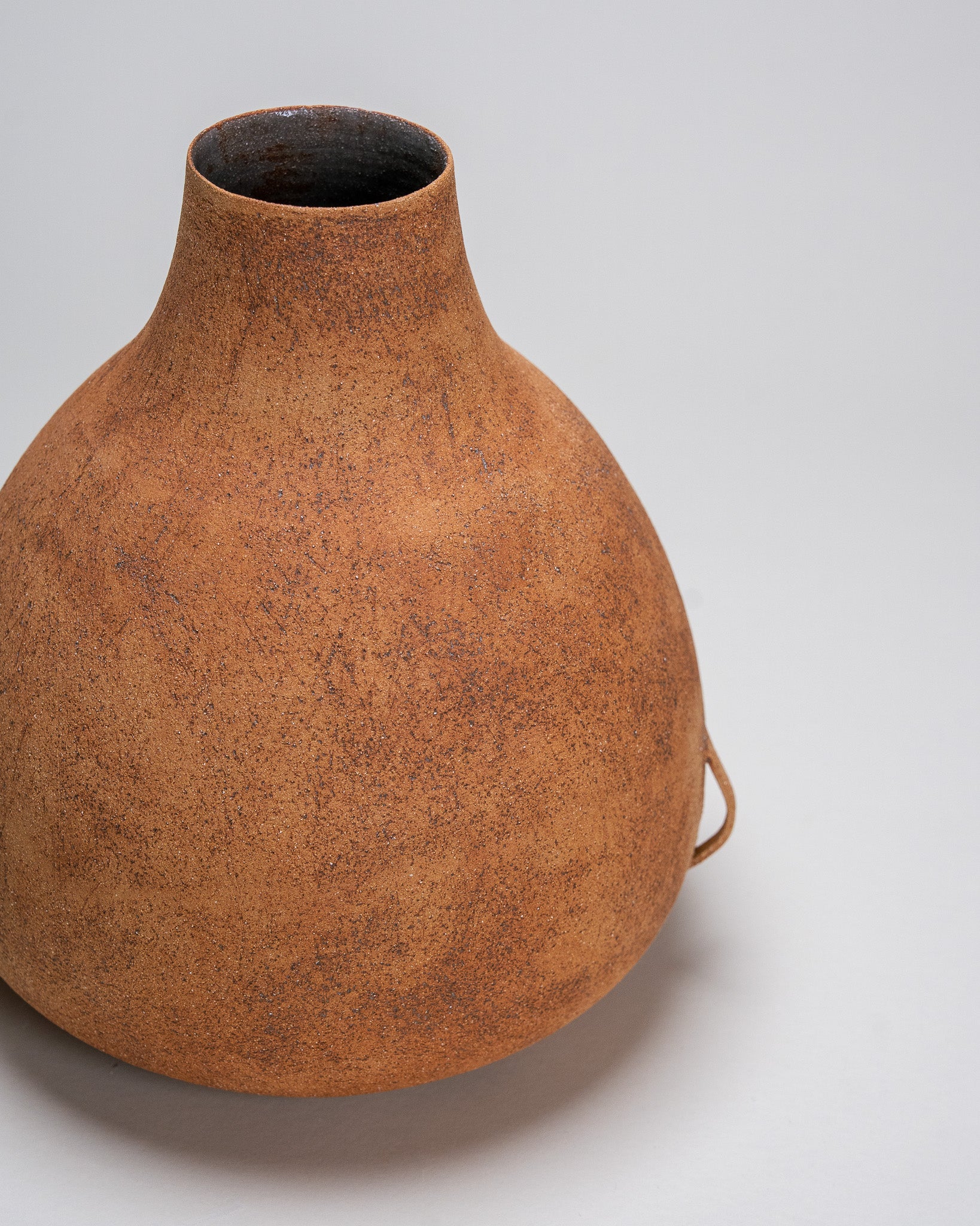 This vessel is crafted from chamotte red stoneware, a material chosen for its raw texture and enduring connection to the earth. It's finished with a hand-carved feel that bridges the gap between functional object and fine sculpture. The neutral, warm tones of the unglazed clay celebrate the slow passage of time and the disciplined hand of Cécile Cayrol.
